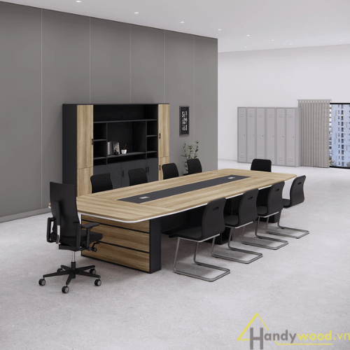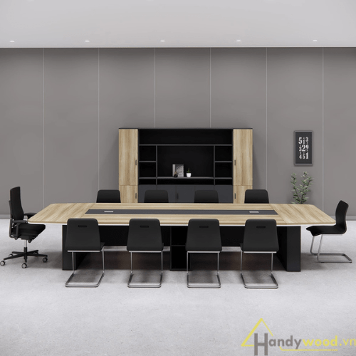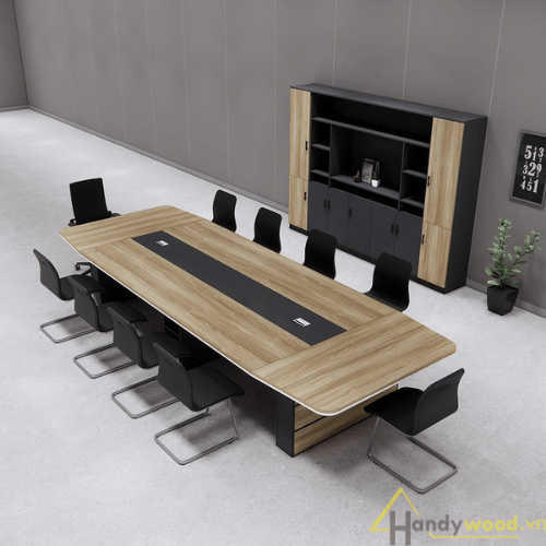 Bàn họp BH102 với kiểu dáng sang trọng, chất liệu gỗ MDF cao cấp, thiết kế theo yêu cầu – giải pháp nội thất lý tưởng cho phòng họp chuyên nghiệp. Xem ngay tại Handywood.vn!