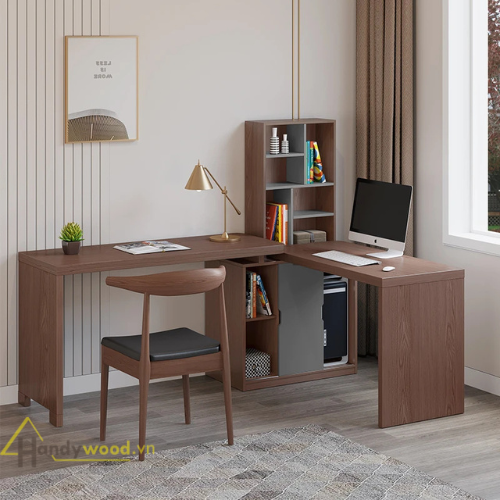 Thiết kế dạng chữ L kết hợp liền kệ sách giúp bạn tận dụng tối đa góc phòng, vừa làm việc vừa lưu trữ tài liệu, vật dụng cá nhân vô cùng gọn gàng và tiện lợi.