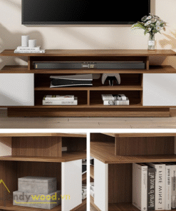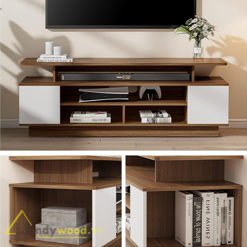 Có 2 hộc kéo kín + 1 khoang mở (để box TV, modem, soundbar…).