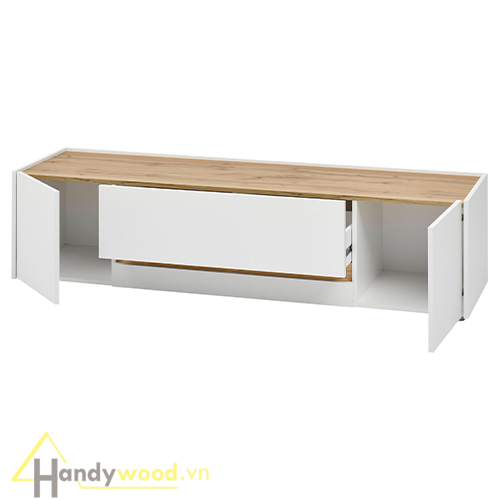 Gồm ngăn kéo kín, hộc mở và mặt kệ rộng, bạn có thể linh hoạt bố trí đầu thu, loa soundbar, đồ decor hoặc tài liệu mà vẫn giữ không gian gọn gàng.
