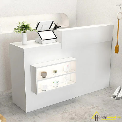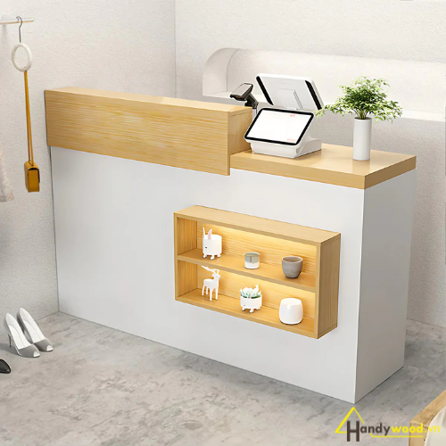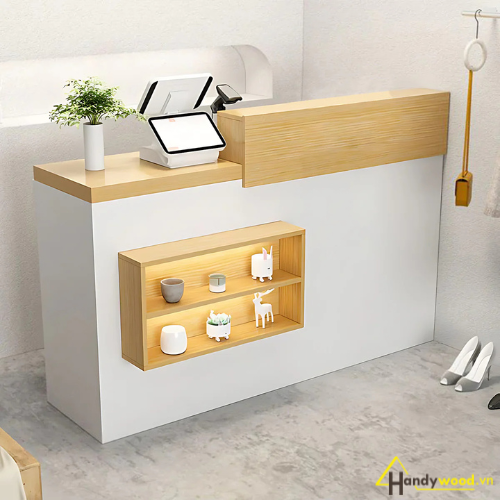 Khám phá quầy thu ngân phong cách mới QTN105 – thiết kế tinh tế, tiện nghi, phù hợp cho shop thời trang, spa, quán cafe hiện đại. Xem ngay tại Handywood.vn!