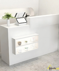 Toàn bộ sản phẩm được gia công từ MDF lõi xanh chống ẩm, bề mặt phủ melamine cao cấp, chống trầy xước, dễ lau chùi – phù hợp với môi trường kinh doanh đông người ra vào.