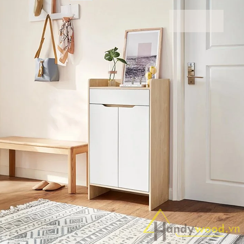 Màu sắc trang nhã: trắng kem, xám nhạt hoặc vân gỗ sáng, giúp tủ không chỉ là nơi lưu trữ mà còn là điểm nhấn thẩm mỹ cho lối vào.