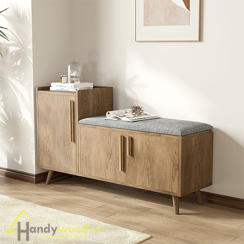 Đặt tại góc lối vào – vừa là nơi cất giày vừa để trang trí