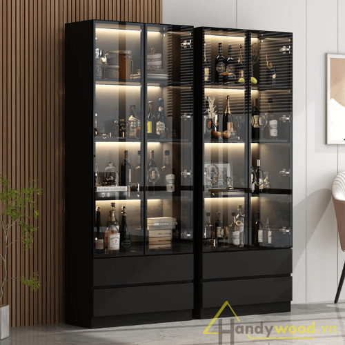 Khám phá mẫu tủ rượu cánh kính sang trọng làm từ gỗ MDF chống ẩm, thiết kế hiện đại, phù hợp trưng bày rượu và decor nội thất. Đặt làm theo yêu cầu tại Handywood.vn.