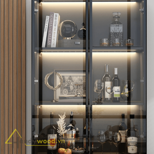Tủ rượu cánh kính sang trọng được Handywood thiết kế tối ưu hóa cả thẩm mỹ lẫn công năng: