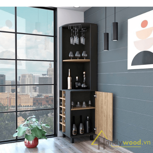 Tủ rượu góc đa năng thiết kế thông minh, hiện đại, làm từ gỗ MDF chống ẩm – giải pháp lưu trữ rượu đẳng cấp cho mọi không gian sống.
