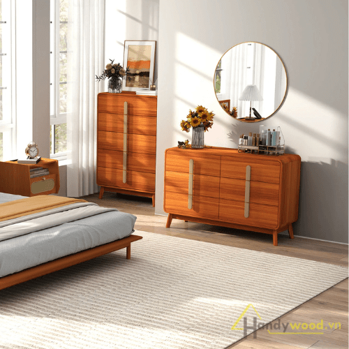 Kết hợp cùng giường ngủ MDF hoặc giường gỗ tự nhiên tông màu ấm để tạo sự đồng nhất.