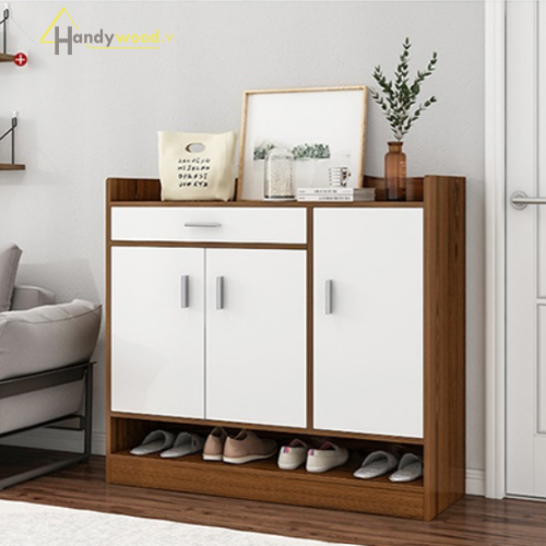 Phần dưới là tủ giày 2–3 tầng, có cửa đóng kín